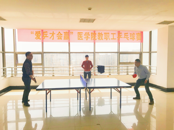 为了响应全民健身的号召,强健体魄,丰富课余生活,同时为了增进老师之间的友谊,3月20日,医学院举办的“爱乒才会赢”教职工乒乓球赛在9楼大厅拉开帷幕,比赛设男单、女单和混双3个项目。