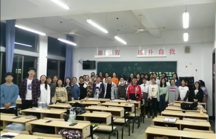 班主任闫姍老师是本次精彩班会的总策划。她不辞辛劳,带病与同学们畅谈,通过讲述不同的真人故事,循循善诱,让同学们深刻意识到珍惜大学宝贵时光,不断提升自己,不断精进专业技能的重要性和必要性,又充满激情地勉励大家要去积极谱写“淋漓尽致”的无悔青春。一句句箴言,像一颗颗火种,点亮在座同学们充满斗志的眼睛。最后,在班主任的倡议下,在场同学集体为班上唯一人在异地即将直面挑战的同学录制了一段满载大家关爱和鼓励的温馨短视频。暖暖的“加油,我们等你回来”,齐刷刷的比心,既是对他乡同学的祝福,也是对彼此的认定,它是一道道金灿灿的阳光,温暖了我们最初的大学集体记忆!