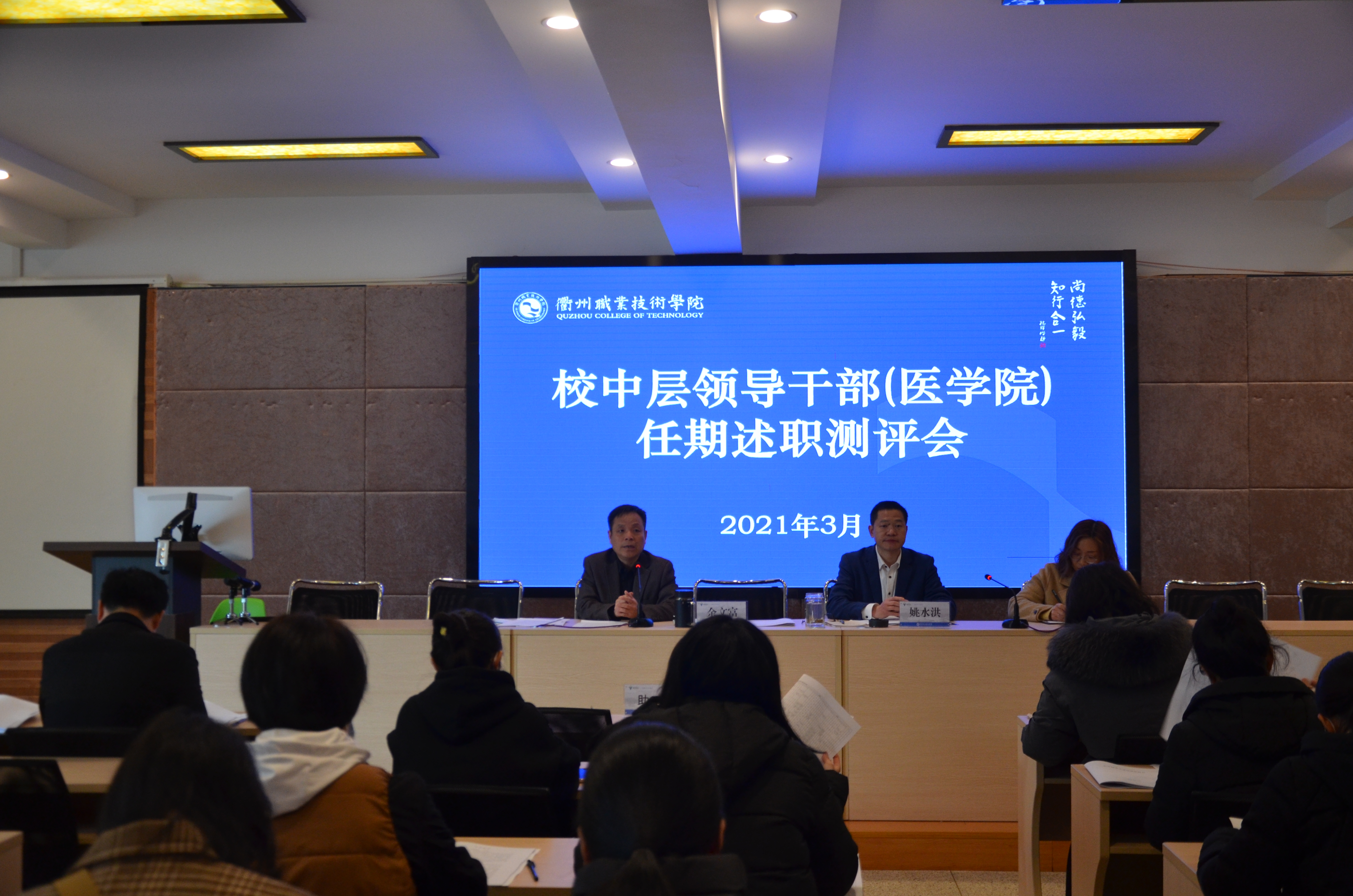 根据学校关于开展中层领导干部任期述职测评工作的会议精神,2021年3月2日,医学院召开了中层领导干部任期述职测评会,会议由余文富书记主持,学校测评组成员、校纪检监察室主任张锦平到会指导,医学院领导班子出席会议,医学院70余名教职员工参加本次会议。