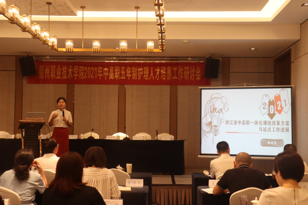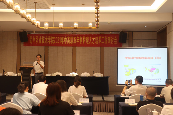 8月23日,我校中高职五年制护理人才培养工作研讨会在江山顺利召开,浙江省教育厅职成教教研室、省教科院职教所副研究员陈晓燕,浙闽赣皖医护康养能力重构研究中心主任、我校特聘教授胡野,江山市教育局副局长王以洪,海宁卫生学校、绍兴护士学校、衢州中等专业学校、衢州护士学校、衢州工商学校的分管校领导、教务处长、专业主任及相关专业教师,我校党委副书记王东升、教务处副处长裴建兵、医学院院长姚水洪、副院长吴忠勤、各专业主任和课程组教师等参与此次研讨会。本次会议由合作学校衢州护士学校承办。