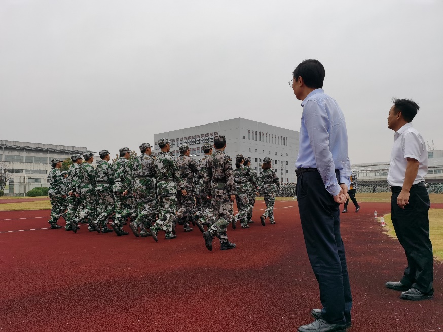 踏进军训训练场地,针灸推拿1班的同学们正在教官的带领下列队训练,他(她)们精神饱满、英姿飒爽。徐书记认真地看了一会大家的训练。待教官整队稍息后,徐书记来到队伍前,班主任向同学们介绍了徐须实书记是我们班“3221”联系校领导,现在来看望大家,同学们想起热烈的掌声。