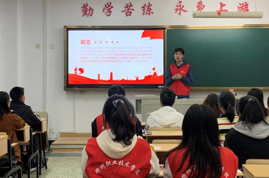 围绕学习教育重点内容,结合“3221”寝室联谊活动,讲好中国共产党的故事,浙江“三个地”的故事,“八八战略”一张蓝图绘到底的故事等。