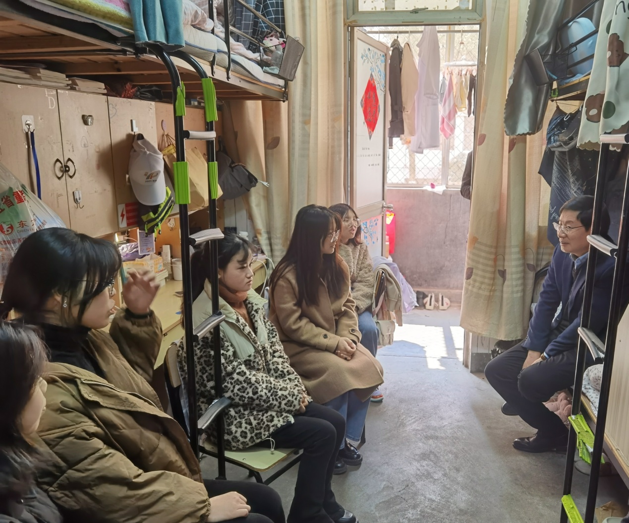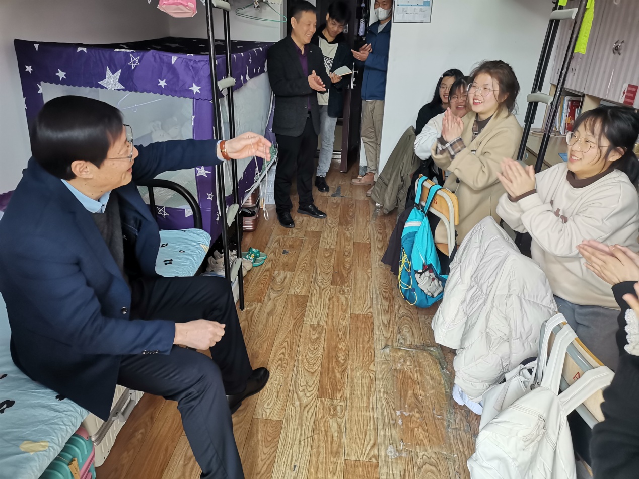 和风习习,阳光灿烂。2月28日,校党委书记徐须实来到了尚雅楼3506寝室、3132寝室,看望联系寝室的同学。