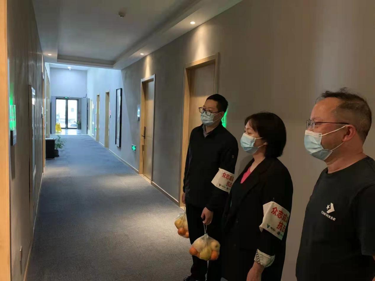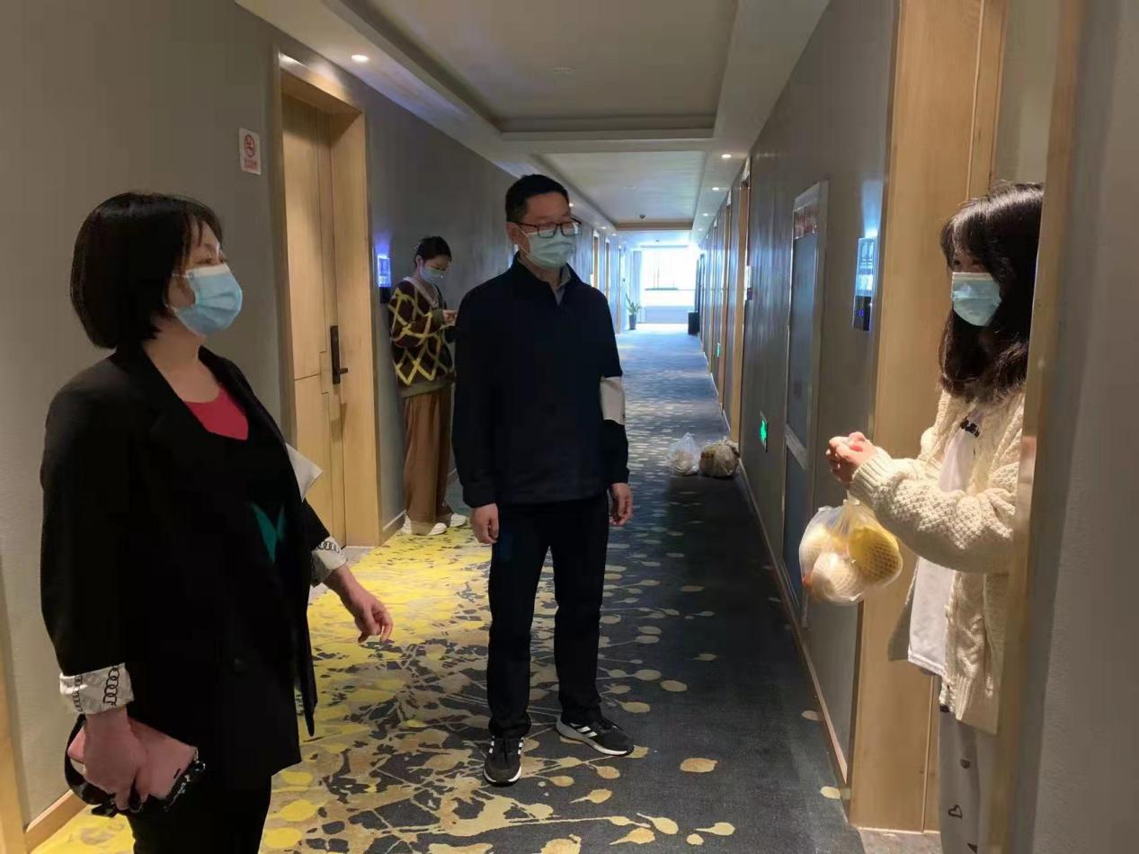 隔离不隔爱,3月19日下午,校党委组织部部长周帅、医学院院长姚水洪前往西门酒店亲切看望了我院正在接受健康观察的学生,并为他们带去了水果等慰问品。