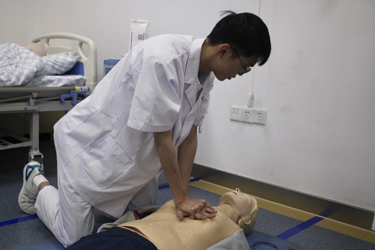 本次考核为学生实习前护理综合技能过关考核,只有通过考核才能顺利进入临床实习。今年的考核形式采用多站式客观结构化临床考试(OSCE),分为2站。第1站是单人单项操作考核,单项项目包括院外单人心肺复苏、急性胸痛患者评估、心梗介入手术后的护理三个操作;第2站是六人团队综合考核,项目为院内心脏骤停患者的抢救配合,抢救站位分为A、B1、B2、C、D、E六个站位,考站内现场抽签决定每个人的站位,需要完成2次除颤1次给药。