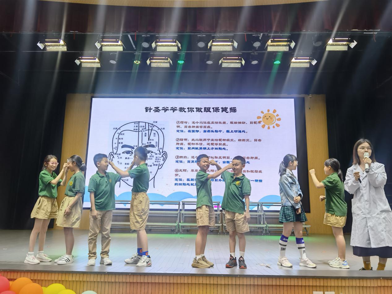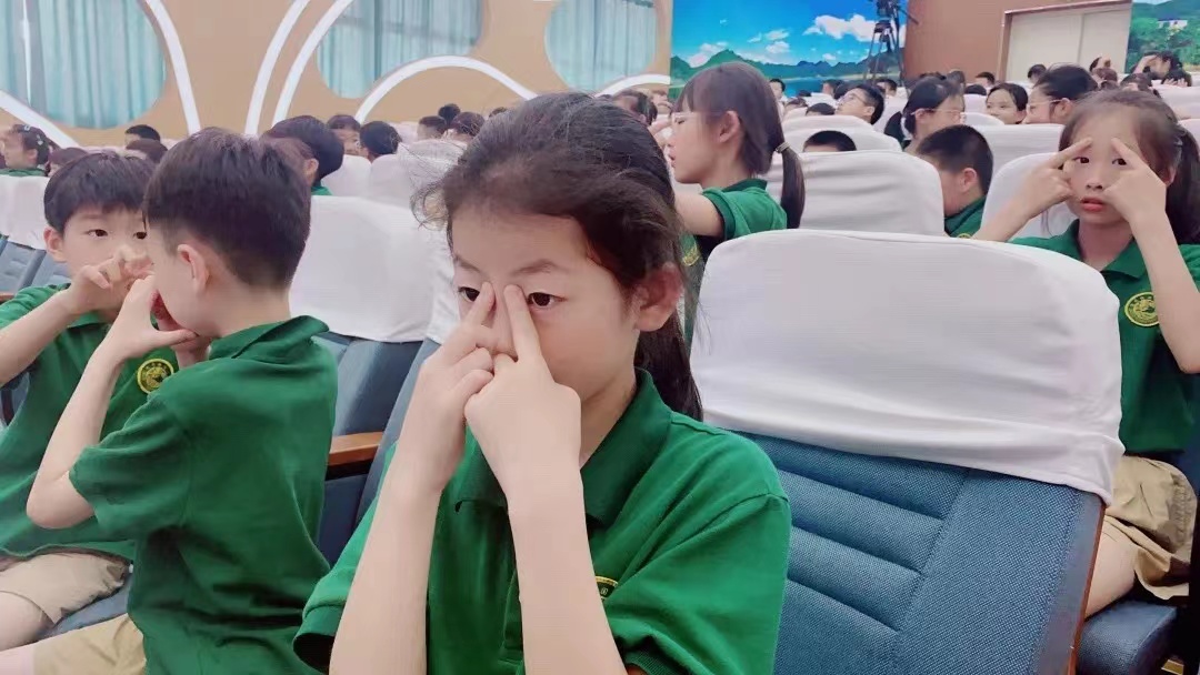 学生们积极配合,进行眼保健操穴位按摩