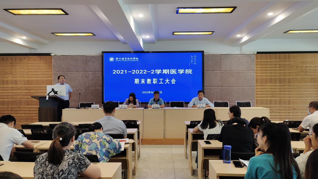 6月15日,医学院在实训中心多功能厅召开期末工作部署会议,医学院领导班子及全体教职工参加会议。会议由医学院党总支书记余文富主持。