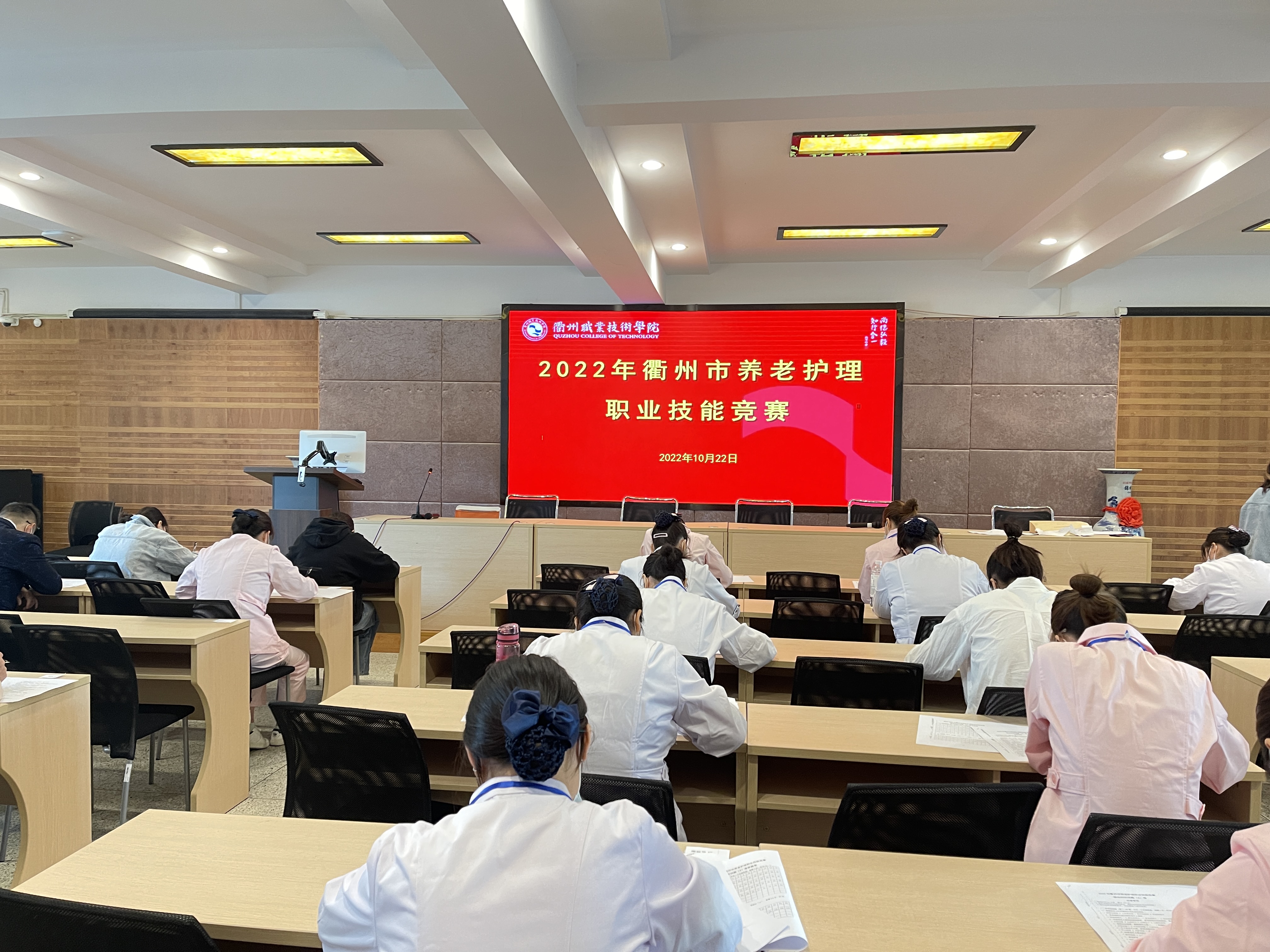 2022年10月22日,2022年衢州市养老护理职业技能竞赛在我校医学实训中心举行。本次大赛由衢州市民政局主办,衢州职业技术学院医学院承办。