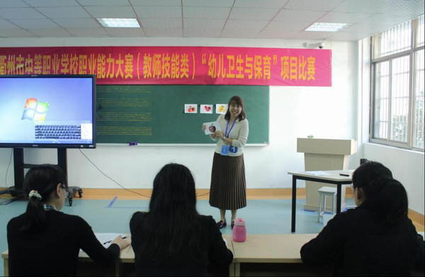 本次比赛共有来自衢州中专、衢州技师学院、衢州市第二中专等5所中等职业学校的6位老师参赛,由金华职业技术学院早期教育专业赵青主任、助产专业胡成巧老师和衢州职业技术学院护理专业赵华主任担任大赛评委,衢州职业技术学院医学院范晓江老师担任仲裁长。