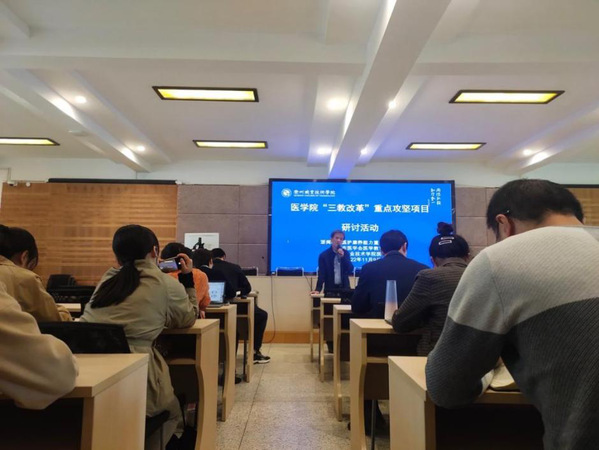 为进一步落实和推进医护康养省级高水平专业群攻坚任务建设,形成一批有影响力的标志性成果,2022年11月9日,在医学院实训楼多功能厅开展了医学院“三教改革”重点攻坚项目研讨活动。浙闽赣皖服务能力重构研究中心主任胡野教授,医学院全体教师参加会议。本次研讨会由医学院副院长甘椿椿主持。