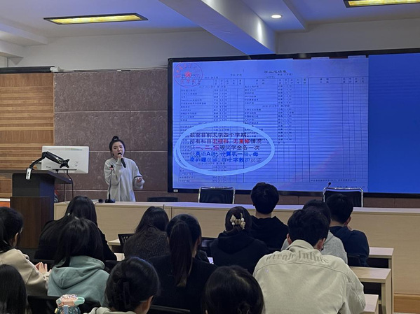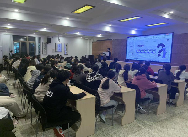 讲座中,余照坤从“面对职场的五点准备”、“就业创业的五项判断”、“规划未来的5个问题”多角度、全方位的为同学们讲了职业生涯规划,他勉励同学们在日常生活与学习中要注重能力提升、保持良好心态、勇于把握机会。徐茗捷以“做青春里最亮的光”为题,分享了她在大学里评奖评优、志愿服务、社团工作、实习实训的学涯经历,建议学弟学妹们不要放弃每一次出彩的机会,每天比别人努力一点点,就能成为你理想中的人。提问环节现场气氛热烈。