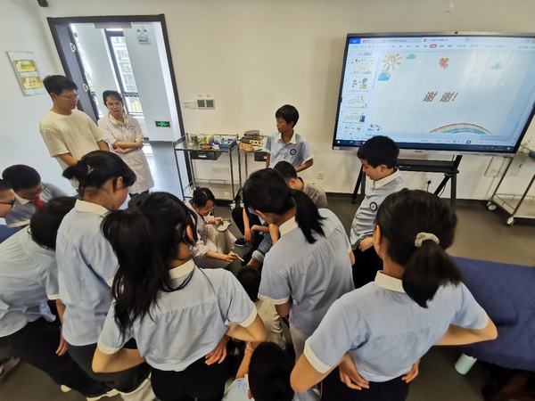 2023年4月17日,塘塬口小学33名学生齐聚医学院大健康实训中心,开始了中医针灸文化之旅。针灸推拿专业师生带领学生们,学习中医药知识,将中医药文化知识以更加亲和、直观的方式带入中小学日常学习生活中,拓展学生的视野,启发学生以中医思维方式进行思考,积极引领广大青少年认识中医、了解中医,感受中医的博大精深。