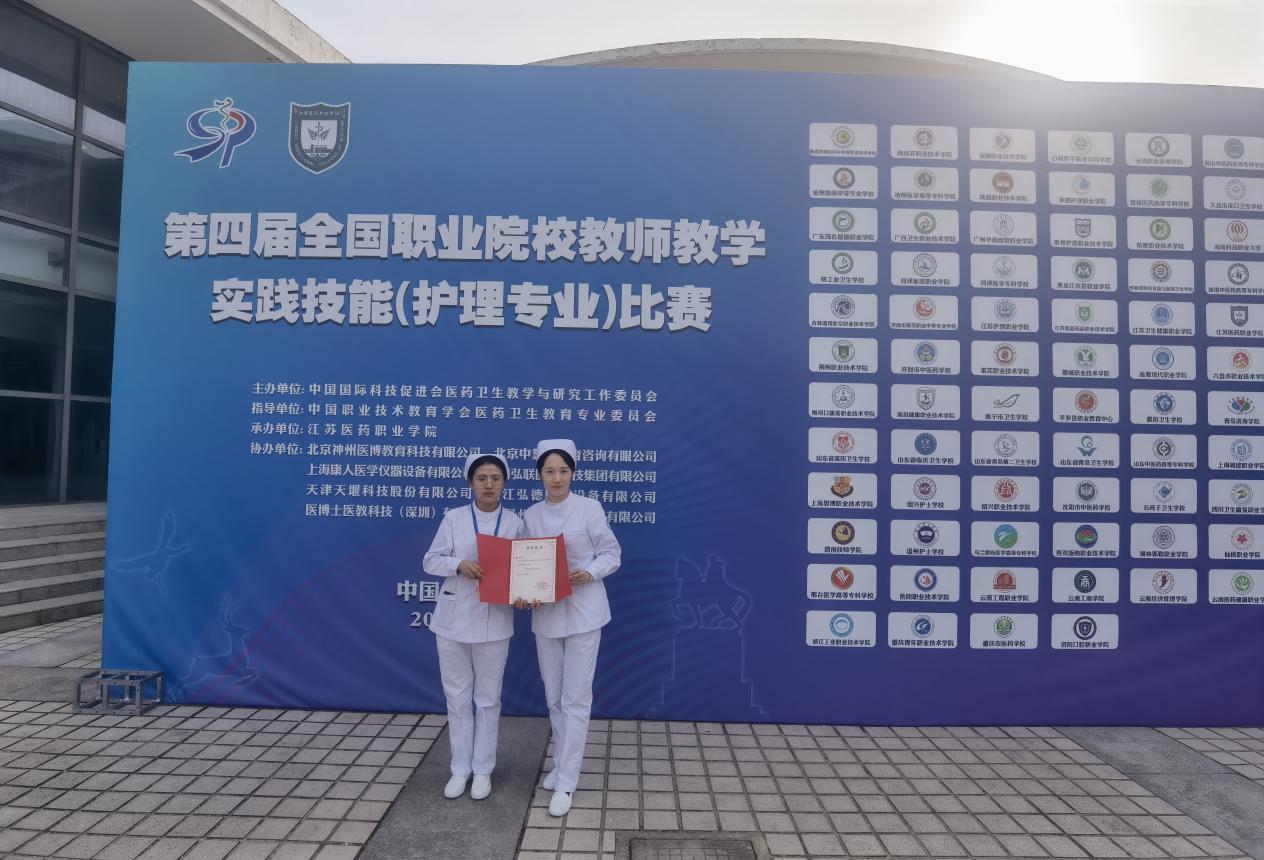 4月12日至15日,第四届全国职业院校教师教学实践技能(护理专业)比赛在江苏医药职业学院成功举办,共有来自全国92所中高职院校、184位参赛选手同台竞技、交流互鉴。经过为期3天的激烈角逐,我校参赛教师许海莲荣获“说课程”单项一等奖,许海莲、李娟荣获“技能竞赛”单项二等奖、团体三等奖。