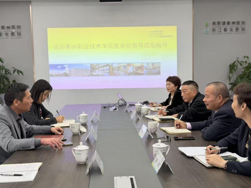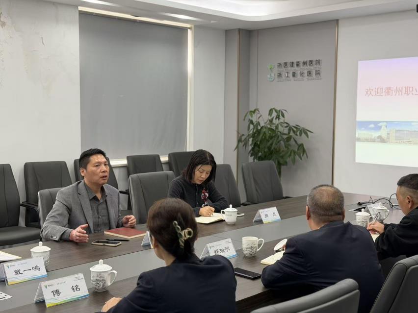 11月5日,医学院党总支书记洪兴华带队走访浙医健衢州医院,与院长助理郑瑞明等领导进行了深入的交流和座谈。此次走访旨在了解实习生的学习、工作和生活情况,调研用人单位对学生就业的需求,听取实习单位对学院人才培养的意见和建议,并探讨全面深化校企合作、产教融合的可行性。