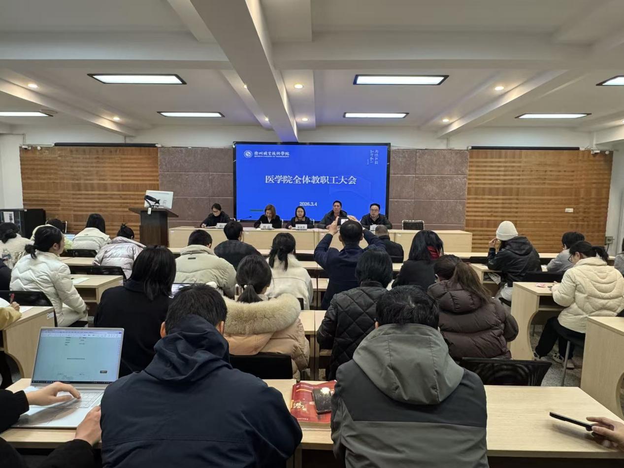 为统筹部署新学期各项工作,凝聚全院教职工干事创业合力,3 月4日上午,医学院召开2026年春季开学教职工大会。医学院领导班子成员、全体教职工参会,党总支书记洪兴华主持会议。